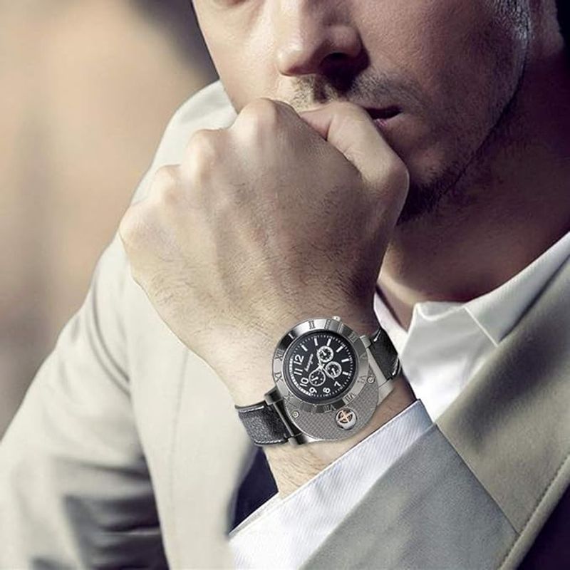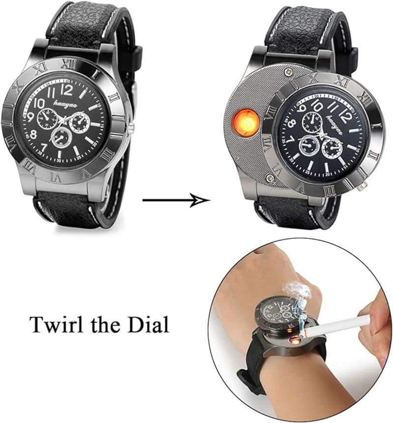 Meet the Watch Lighter, a revolutionary 2-in-1 accessory that combines a sleek wristwatch with a built-in USB rechargeable electronic lighter. Whether you're lighting a candle, cigarette, or campfire, this windproof lighter watch is your perfect companion. Its modern design and practical functionality make it a must-have for anyone who values style and convenience.