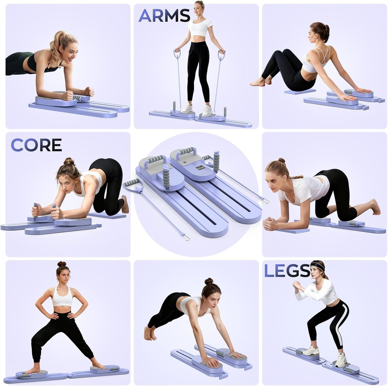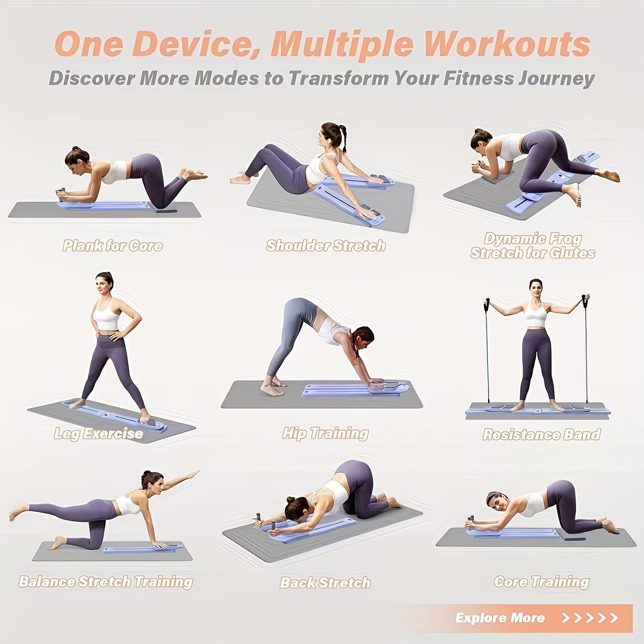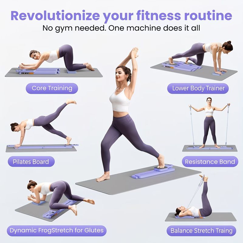 Create a complete home gym with one device – As shown in the picture, this Pilates board supports core training, lower body exercises, resistance band exercises, and balance training, allowing you to easily exercise at home without an expensive gym membership.