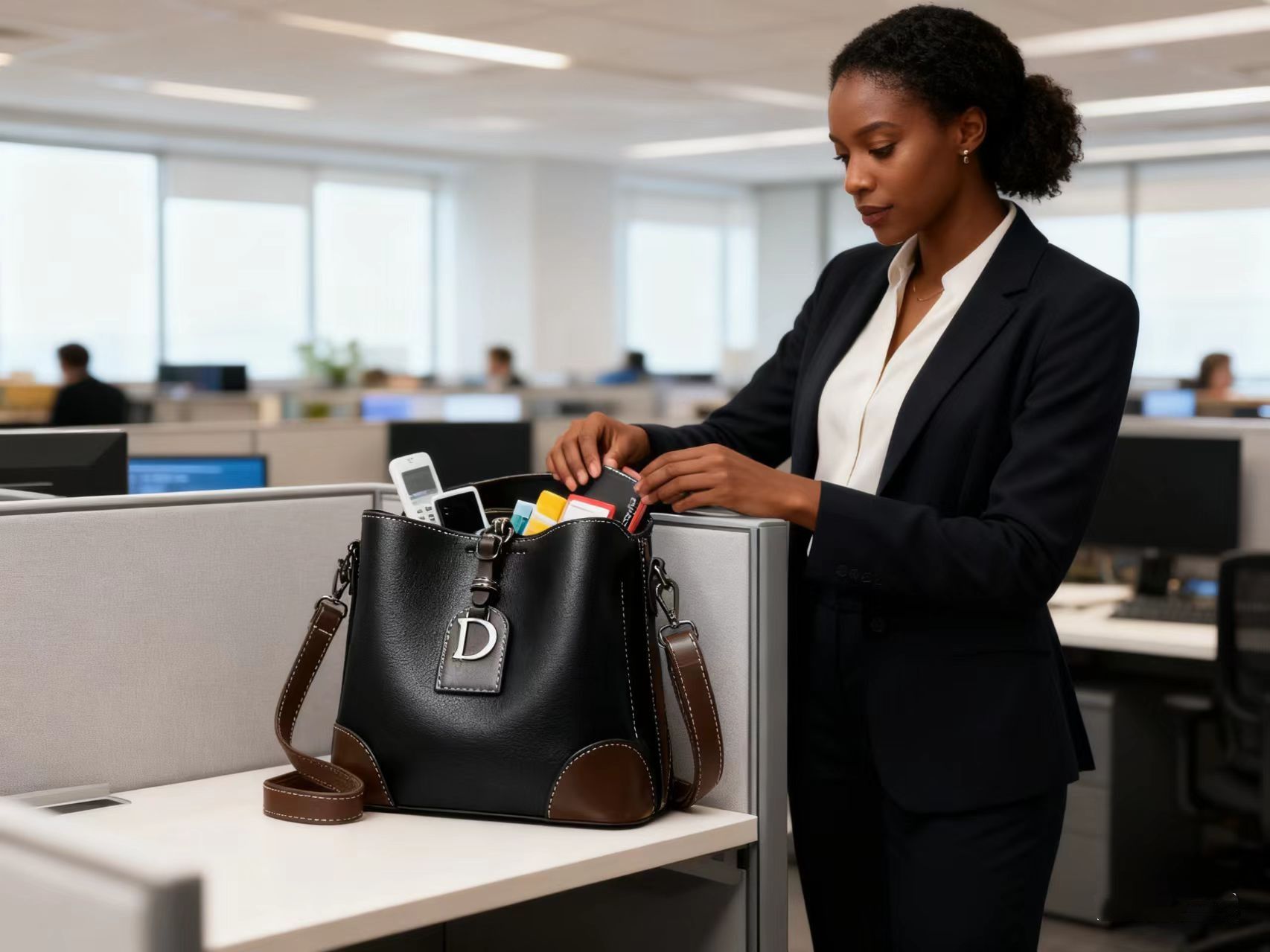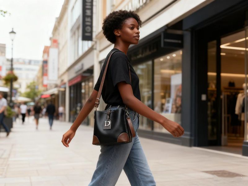 👜Featuring a unique black and brown contrasting stitching design and adorned with a stylish D-shaped logo.