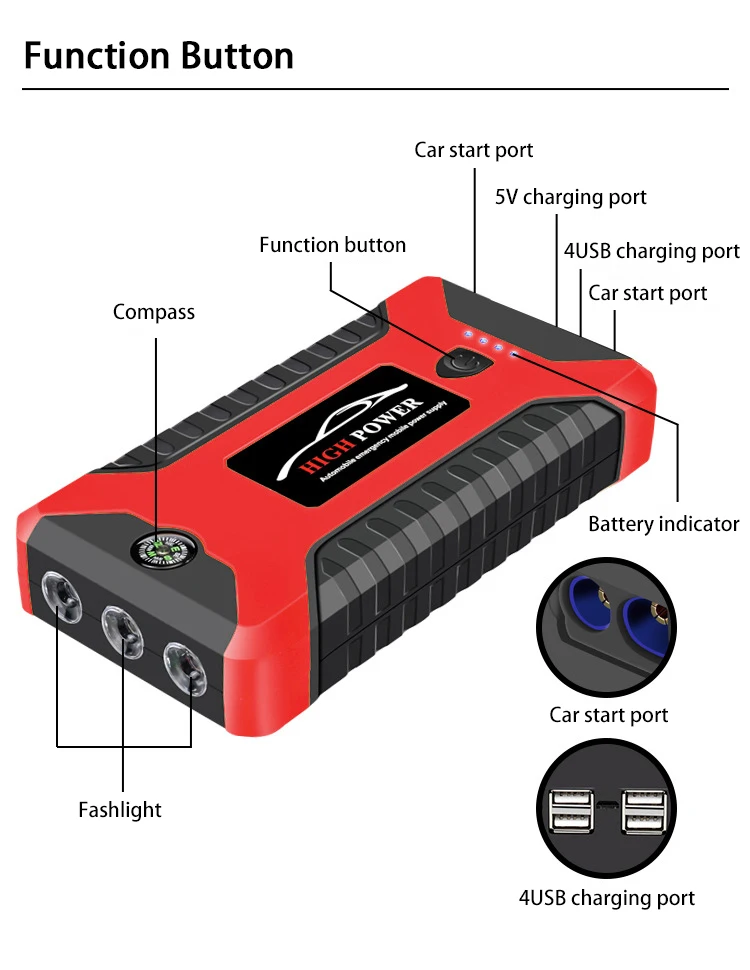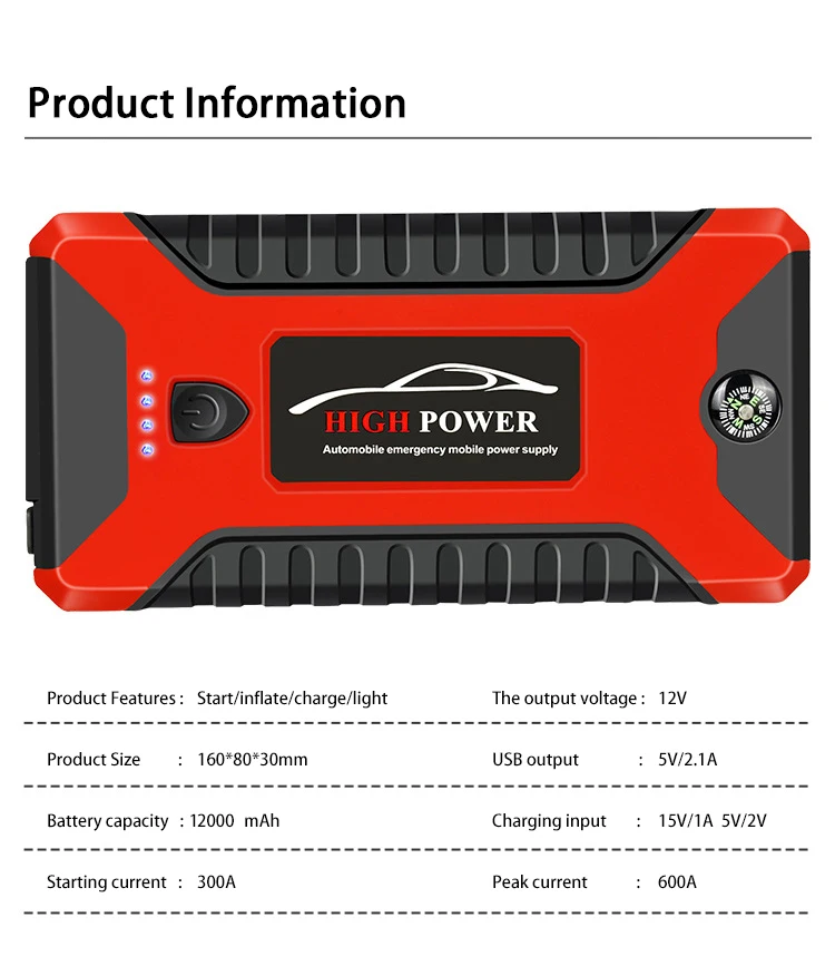 6000mAh Car Jump Starter 600A Portable Car Device Car Starter