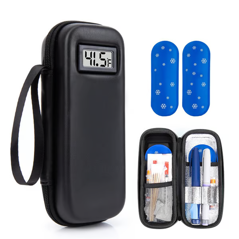 1 x insulin pen travel case, 2 x reusable ice packs. The is dedicated to enhancing the convenience and happiness of individuals living with diabetes, empowering them to enjoy worry-free travels and daily activities.